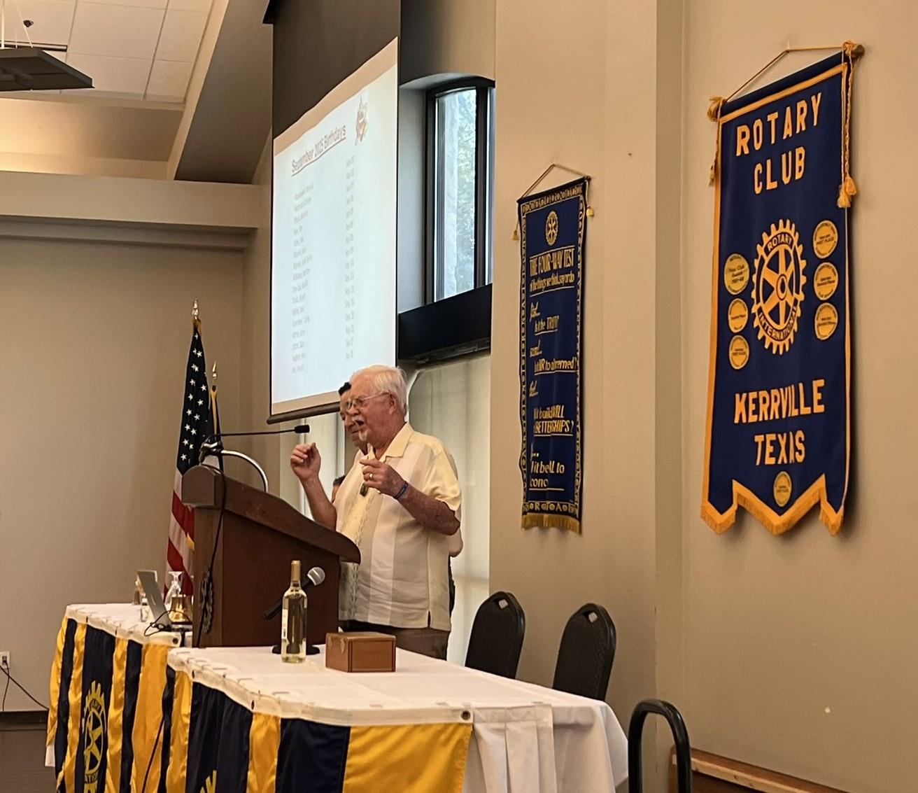 Classification Talk- Bill RectorBill Rector provided a classification talk at the meeting last Wednesday. Bill was a radiologist in Kerrville for many years, and credited several mentors for shaping his career path. His dad encouraged him to be a doctor because they help people in the community. While in medical school, a professor introduced him to radiology, which at that time was mainly the study and use of xrays for diagnosis. Bill credits this professor as a mentor and role model, and decided to concentrate in this specialty. The field rapidly expanded to include numerous types of imaging we know today, including MRI's, CT Scans, Ultrasound imagery and more. Bill encouraged the club members to be role models and mentors, and to share their expertise to better the community. He has served our community in numerous volunteer capacities over the years, including his current position as the President of the board of directors for the Upper Guadalupe River Authority, and Chairman of the board of directors at the Heart of the Hills Heritage Center.