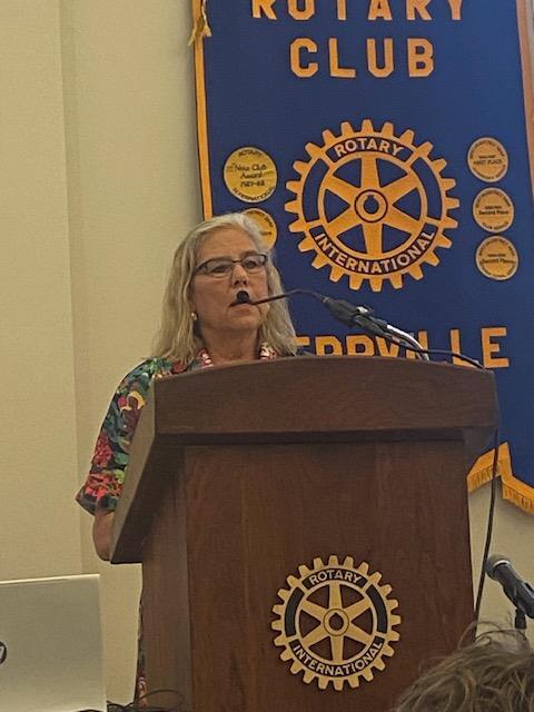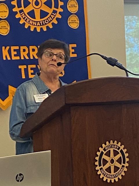 Tammy Prout- The Hill Country Community JournalOur speaker last Wednesday was Rotary member and past president Tammy Prout. Tammy is the owner of the Hill Country Community Journal, a local newspaper she started in 2005. Tammy grew up in San Antonio, and moved to Kerrville in her early twenties. She didn't know exactly what she was going to do here, but was offered a temporary job at the Kerrville Daily Times selling ads. After that, she went to work for the Mountain Sun newspaper, and learned all facets of the newspaper business, including being a reporter and photographer, developing her own photos and doing ads and graphic layout. In 2004, she was diagnosed with breast cancer and went through chemotherapy, losing her hair and compromising her strength. Shortly afterward, the Mountain Sun was bought out, and Tammy decided to start a community newspaper, focusing on reporting on local news, events and sports. This year marks the twentieth anniversary of that adventure, and with a circulation of about 3,000 customers, the Community Journal is still going strong. Challenges include retaining staff, the economy, recovering from COVID when advertising revenue dried up, and social media competition. She battled breast cancer again in 2022, but still manages to remain strong and strives to report local news and events with honesty and integrity.