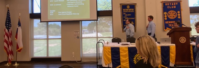 City Flood UpdateKerrville City Manager Dalton Rice provided an update on the current state of the Flood Recovery in our area. Dalton spoke of a "reimagine" theme for the Kerrville area, to visualize what we will become in the months and years ahead. The community has been involved in three broad categories of challenges, including Rescue and Recovery, Economic Recovery and Debris Management. There have been over 2,000 personnel involved in the recovery, 18,000 volunteers and 130,000 hours of service. The water treatment plant intake equipment was dammaged, so the City of Kerrville is relying on Aquifer Storage and Recovery (ASR) wells for our water supply. Repairs are expected to take several weeks. There have been discussions about possibly draining Nimitz Lake for recovery efforts, but no decisions have been made at this point. Dalton indicated that natural disasters usually set communities back five to ten years, and future budgets of our local government entities will likely be affected. There will be many discussions about rebuilding in flood prone areas, with private property and public safety debated in future policy decisions. Rotary Grants Kristi Shepherd has been leading an effort for Rotary grant applications to assist in the flood recovery process. Kristi has contacted several local volunteer fire departments to see what their most pressing needs are, and is in the process of writing grant applications to fulfill those needs. Items could include ATVs, specialty equipment clothing , boots and washers and dryers. |